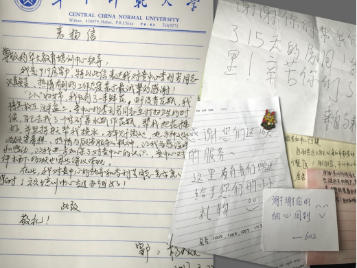 2017年3月22日,华大教育培训中心前台收到919房间客人一封热情洋溢的表扬信。表扬信中对客房服务员李利芳细心周到、认真负责的服务工作态度表示衷心的感谢。信中特别提到一件令她倍感温暖且记忆深刻的事情:“三八”妇女节当天她收到一束鲜花,因没有花瓶,随手放在了房间洗手盆上,李利芳在清洁919房间的卫生时发现这束躺着的花,立刻想到了顾客的需求,然后自己制作了一个花瓶把花插好,还坚持每天换水。本只是服务员的举手之劳,却深深的打动了客人,李利芳她在客房服务时曾多次受到顾客的表扬。