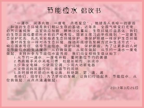 “节能俭水宣传周”活动的成功举行,目的是不断增强了广大师生节能环保的意识,从点滴做起,从自身做起。