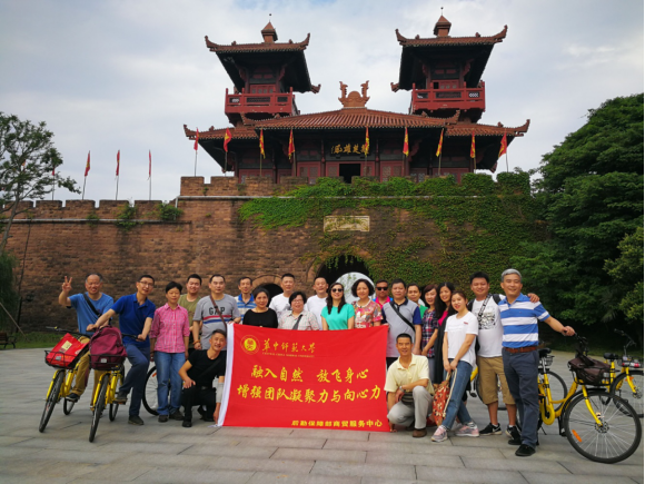 活动从下午2点半开始,起点为风光村,大家沿着蜿蜒绿径一路途经梅园、磨山北门、楚城、磨山公园大门等,最后到达樱园,全程约5公里。当天上午刚下过雨,清新的空气更增添了大家徒步的兴致,大家一改平日里紧张繁重的工作节奏,全程都兴高采烈、精神昂扬,在此起彼伏的欢声笑语中,分享了亲近大自然徒步和骑行带来的乐趣。