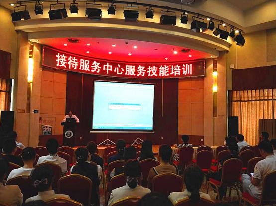 讲座中,唐老师就服务意识、服务技巧、在对客服务中遇到的问题、业务技能做出了深入浅出的讲解,并适时的结合中心员工工作、生活实际案例,进行现场讲解及操作演练。