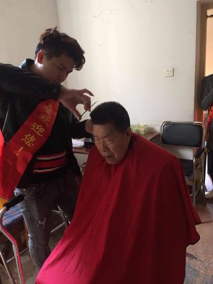 上午8:30献爱心理发活动拉开帷幕,商贸服务中心组织党员们和积极分子一起分别在各个地点布置,为老人免费理发做好准备工作。很快,前来理发的老人们络绎不绝,理发师都一一满足老人们的要求,从来不嫌麻烦。理发师说“今天到这里来义务理发,用这种方式帮助他人,奉献自己的爱心,心里非常高兴,同时也能锻炼自己,巩固专业知识”。整场活动有条不紊的进行着,同时还为几位腿脚不方便的老人提供上门理发服务,仅一个上午,两个服务点就给学校100多名老年人理了发。理发师精湛的手艺和热情周到的服务得到了老年人的一致称赞。
