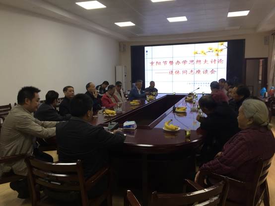 2017年10月24日上午,水电修建服务中心在监管平台会议室召开了以“重阳节暨办学思想大讨论”为主题的退休同志座谈会。此次座谈会的召开,一是重阳节将至,借此对中心的各位退休老同志表示慰问,增进情感交流;二是在学校进行双一流的建设背景下,如何结合中心的工作实际创建一流的水电修建服务和一流的后勤服务,开展办学思想大讨论。