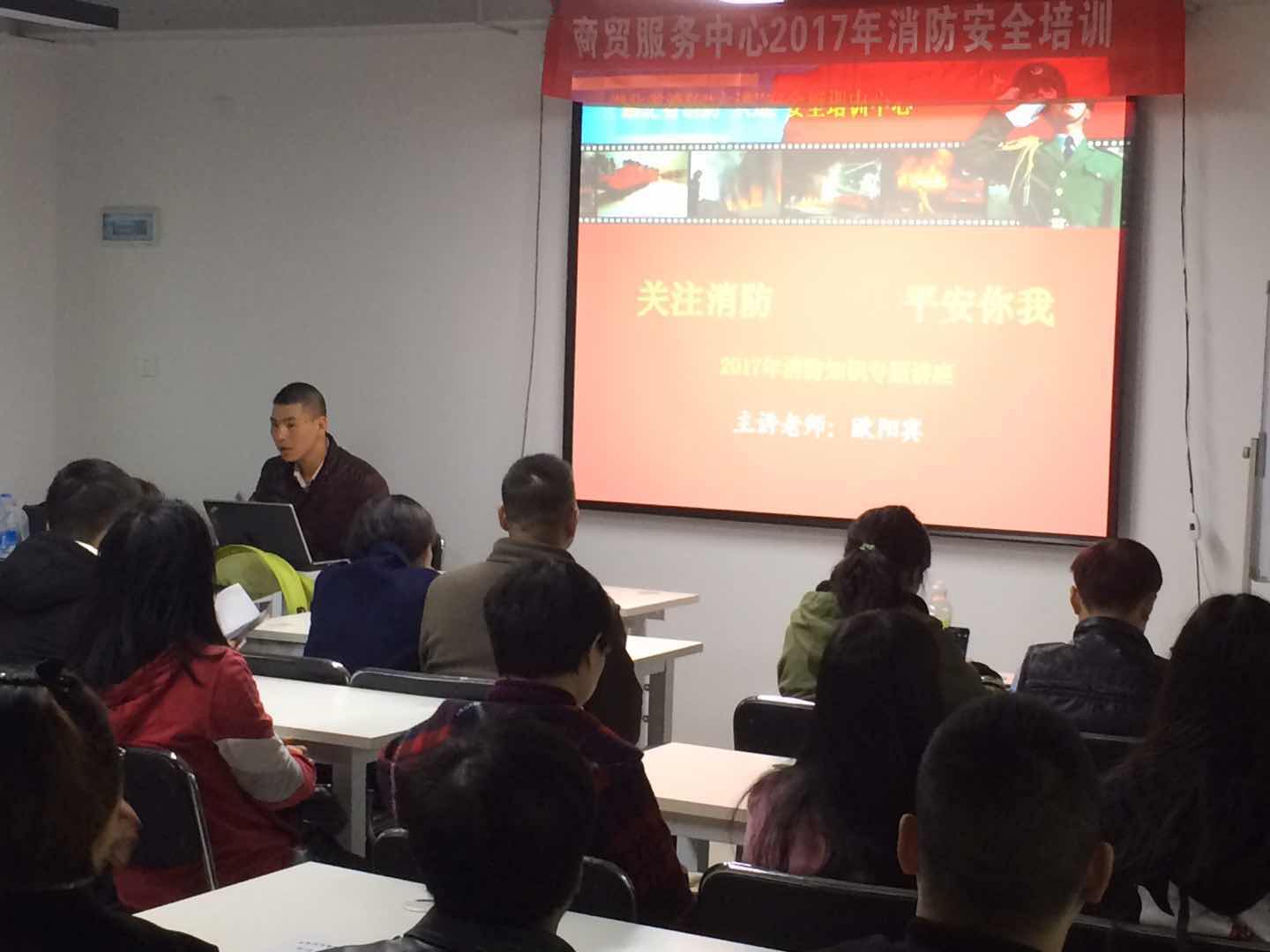 2017年11月14日上午9时,在满江红大楼415教室,商贸服务中心在后勤保障部熊妮丽副部长的亲自参与指导下,按照学校及后勤保障部关于<切实做好2017年11月-2018年2月安全工作的通知》文件精神要求及部署,结合围绕商贸服务中心各门店、部门秋冬季的各项安全工作、安全检查为重点,商贸中心蔡武主任和仇琦书记再一次特邀消防专业人士欧阳警官前来授课,举行了消防安全知识专题培训,讲授消防安全知识和操作应用。商贸服务中心全体员工、广大租户和合作经营户约80余人积极参与活动。