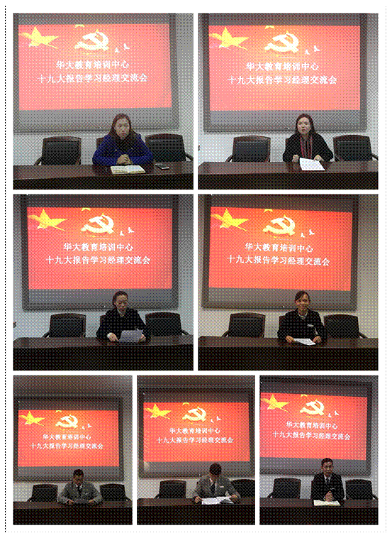 11月27日下午15点,华大教育培训中心在208会议室召开了《十九大报告经理学习交流会》,中心领班级别以上员工参加,后勤保障部副部长李丹莅临本次会议。