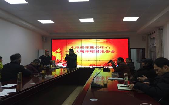 2017年11月30日上午10时,水电修建服务中心全体职工学习贯彻十九大精神讲座在节能监管平台会议室举办。马克思主义学院李敬煊教授作了以“党史视阈下十九大之理论创新”为主题的辅导讲座,本次讲座由中心书记周国强主持。