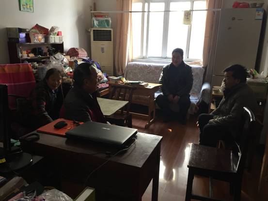 当日,武汉天气恶劣,风雪交加,中心的几位领导顶着风雪,首先前往困难老党员邓以和的家里,中心书记亲切地与他拉起家常,嘘寒问暖,询问他的生活状况和身体情况,将慰问金送到他们的手中,并特别关照老人们要多注意身体,保持良好的心态,发挥余热,一如既往的支持后勤工作,为学校各项事业做出自己的贡献。