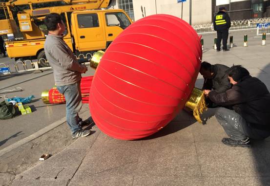 在确保安全的情况下,经过一上午的工作,我校北大门的上空迎风飘荡着红红的的大灯笼,既显得格外喜庆,增添了节日的仪式感,又给在校度春节的师生带来了温暖。