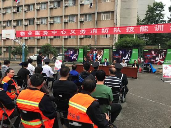为增强消防安全意识,使全体义务消防员掌握基本技能,提高消防应急机动能力。2018年5月10日下午三点,物业服务中心及外包物业公司共60余人在西区篮球场进行了义务消防员训练。本次消防训练项目包括灭火器操作技能、消防栓操作技能、疏散应急预案演练。