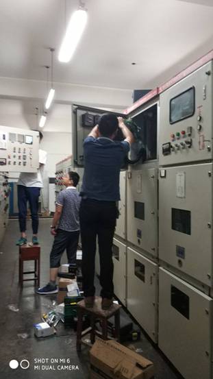 在这次安全运行试验中发现了部分设备存在安全隐患,特别是南湖食堂配电房两台高压供电设备电容互感器容量偏小需要更换。因为排除隐患工作难度较大,而且为了保障学期末在校师生的用电需求,特别安排8月9日早上5点停电对南湖食堂两台高压设备部件进行更换。中心副主任路遥同志在现场进行安全监督,并对设备的运行参数的设置进行技术指导,顺利的完成两台高压设备部件更换升级工作。