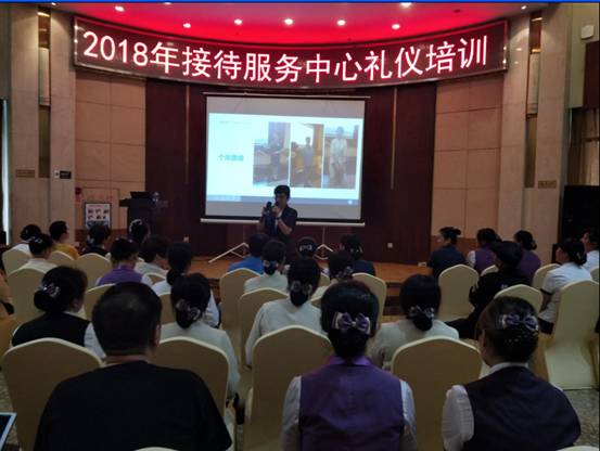 秉承专业的酒店知识态度,以相互学习、相互关爱、相互扶持的目的,共同为中心打造一个温馨、和谐、健康、创新的工作团队,2018年暑期接待服务中心特别邀请了校城环学院副教授李艳为中心员工进行了一场礼仪实操培训。