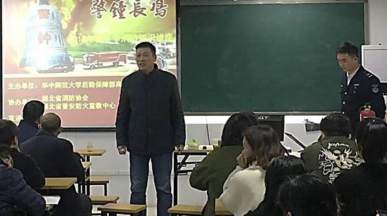 为增强商贸服务中心各部门及门面出租户的消防安全责任意识,加强一线工作人员对火灾处理能力,熟练掌握火灾的处理流程,不断提升在处理突发事件中的协调配合能力,11月21日下午2点30分,商贸服务中心特邀湖北省消防协会普安消防宣教中心的田弯教官,在满江红大楼602教室开展了以"全民消防、防治火灾"为主题的消防安全培训。商贸中心领导班子成员、各部门负责人、满江红大楼、校内签约门面承租户主要负责人、员工等共计79人参加了安全培训,商贸中心仇琦书记在培训前讲话,对此次消防培训讲座作了具体要求。