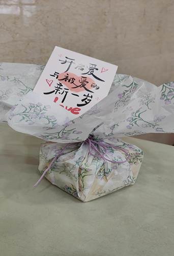 4月14日,管理教育综合楼前台工作人员在登记时发现当天是某位学员的生日,立即与培训班主任联系,精心准备了手写贺卡和小礼物。