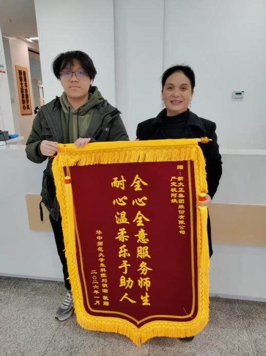 失主接到信息后迅速赶到8号教学楼,经信息核对无误后领回钱包,并对管理员表示感谢。主管严定桃表示,守护教学楼财物安全、为师生排忧解难是管理员应尽的职责。1月10日,失主专程赠送锦旗一面,对物业人员的尽责行为表示敬意。