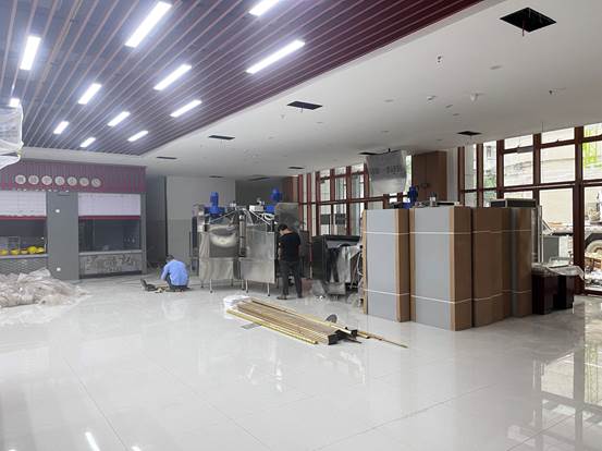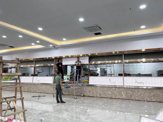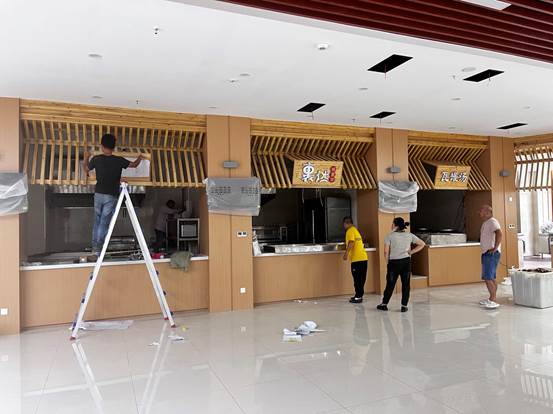 为推进沁园春综合体顺利开业,饮食服务中心班子与中商连锁公司凝心聚力,全员加班加点。为了加快沁园春综合体开业进度,分管副部长熊妮丽多次召集饮食中心和中商连锁公司相关负责人现场会议,统筹协调,帮助联合服务企业顺利开展工作。饮食服务中心联合基建处到现场对综合体装修改造设计图进行审核,对后厨改造图纸报送洪山区审批局进行审核。饮食服务中心在严把施工安全的同时,狠抓施工质量,保证施工进度,确保秋季顺利开业,为全校师生提供更多更便捷的生活服务。
