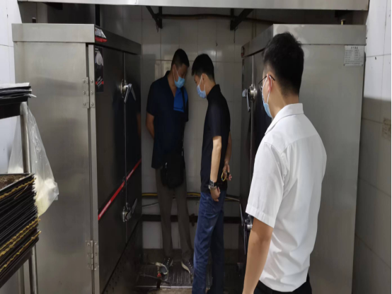 支部书记李启星在检查前强调要高度重视安全工作,要求检查组人员仔细排查,消除安全隐患。随后,检查组分成东区和西区两组对食堂加工间、操作间、仓库、大厅进行了全面检查,从食品采购、仓储、加工、售卖、留样、员工健康状况等方面,对各食堂食品安全管理全过程查看;同时,针对员工每日体温监测、环境消杀、冷冻食品供应等防疫工作重点环节,通过查阅日常防疫工作台账、冷链供货记录等落实情况进行全面检查;检查组重点对食堂内水电气设施使用、维护以及消防设施进行了检查,对存在的问题,责令食堂立即整改。