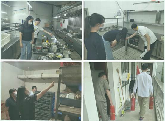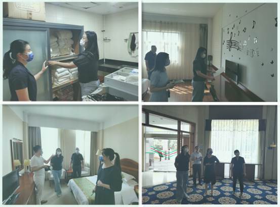 本次检查由后勤保障部副部长李丹带队,中心党支部书记唐健、中心主任陈岚及中心各部门经理参与,对重点区域南湖维修厂、员工宿舍、厨房操作间、配电房、水泵房、消防、安防、电教设施设备和客房房间进行了细致的检查。