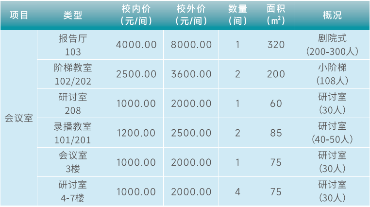 2.会议室简要介绍(详情请致电销售部:027-67866837)