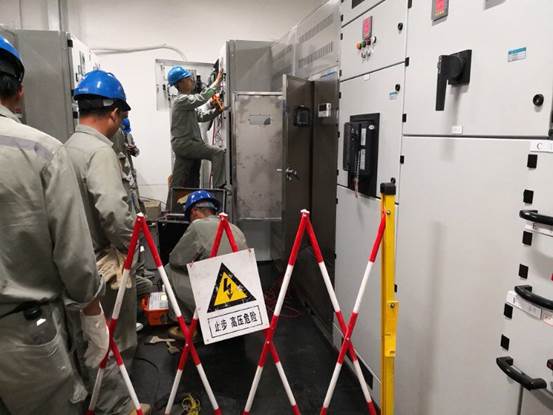 周六 、周日凌晨4点,水电中心相关人员及施工方参与人员全部在中心配电房集合就位,在强调安全作业和优质作业后,凌晨5点,按计划停电开始施工。水电中心3名技术骨干分别带领3个施工班组同时作业,重点检查所有配电设备是否完好,程序逻辑关系是否正确,机械机构是否操作顺畅,变压器和电缆有无隐患故障,低压设备是否能正常工作。施工人员事无巨细,逐一按计划流程检查、实验所有设备,在计划停电时间内完成施工作业(部分区域做到早完成早送电),完成之后做好保养、清扫工作,并做好详细的工作记录。
