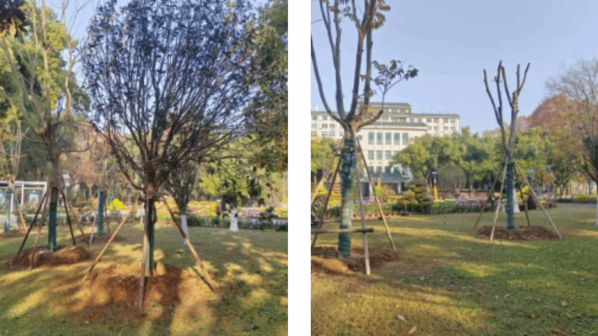在树木栽种及后期管护过程中,各环节均严格遵循园林种植标准与规范,切实保障新补植树木的成活率与良好长势。