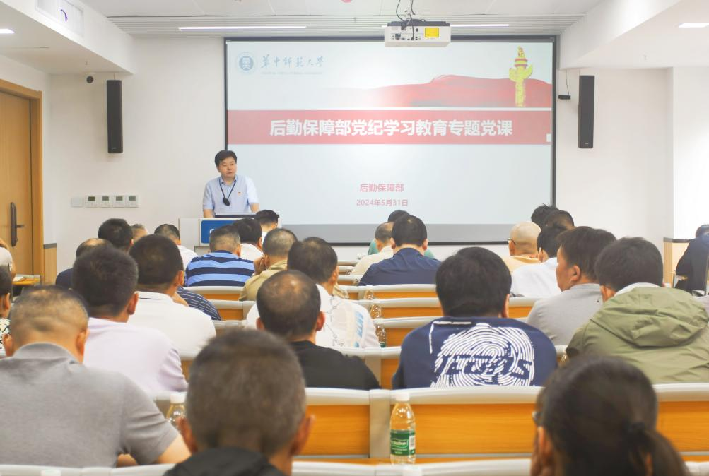 根据后勤保障部党纪学习教育的工作安排,5月31日下午,后勤保障部在文科楼二期301教室举行党纪学习教育读书班第二次集体学习,袁本芳部长作党纪学习教育专题辅导报告。全体部领导、各部门负责人及在职党员共计70余人参会,会议由党委书记王军主持。