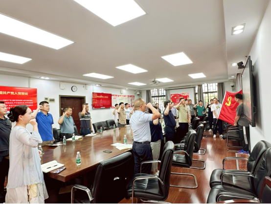 活动在庄严的党旗前拉开序幕,机关支部全体党员重温入党誓词,进一步坚定了大家的初心和使命。
