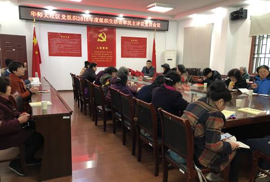 按照珞南街下发的《关于召开2018年度基层党组织组织生活会和开展民主评议党员的通知》要求,华师大社区党委及三个支部于2019年3月7日分别召开组织生活会和民主评议党员工作。
