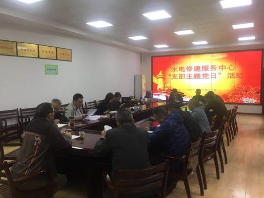 10月18日,水电修建服务中心在节能平台会议室召开“支部主题党日”活动,中心全体在职党员参加,后勤部李丹副部长参与此次会议,会议由中心书记周国强主持。