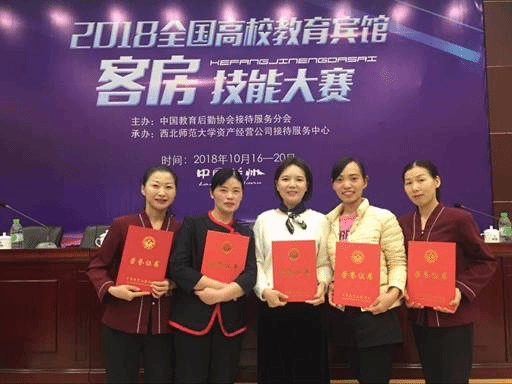我校后勤保障部参赛团队在宾馆客房服务技能大赛中荣获六项荣誉,三名参赛选手张伏青获得技能大赛特金奖、熊香获得技能大赛金奖、朱春红获得技能大赛金奖和最佳中式铺床奖荣誉,华大教育培训中心、接待服务中心获得最佳组织奖荣誉。