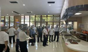 2023年9月1日下午,副校长任友洲在部领导袁本芳、熊妮丽及饮食服务中心等工作人员的陪同下,对全校食堂开学准备及食品安全工作进行了全面检查。