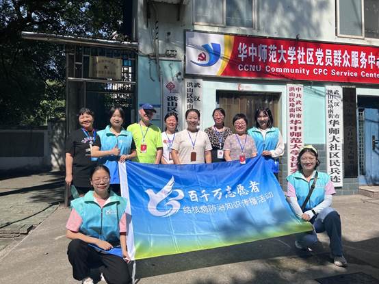 为了更好的实施“百千万志愿者结核病防治知识传播活动”,动员社会力量,加深公众对结核病危害性的认识,提高人民群众结核病防治知识知晓率,生命之光志愿服务队于8月28日下午,深入华中师范大学社区,向居民科普结核病相关知识。“肺结核主要是通过呼吸道传播的,人人都可能被感染,因此在我们咳嗽、打喷嚏时要掩住口鼻。”“如果有肺结核可疑症状,比如咳嗽、咳痰两周以上,要及时就诊。”……生命之光服务队的队员们亲切地向社区居民们科普预防和治疗结核病等知识,让他们对结核病有了更深层次的了解。在本次走访科普中,队员们共向群众发放宣传折页60余份,宣传了结核病防治核心知识,使大家认识到结核病防治的重要性,提高自我健康保护意识。