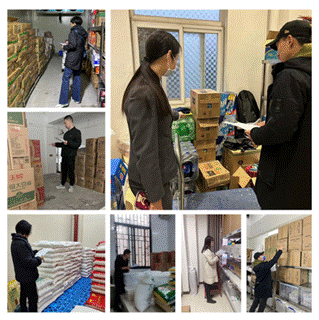 2023年11月25日下午,按照财务管理制度要求,为保障各中心物资合理储备,提高流动资产使用效率,确保各项物资的安全与完整,财务管理办公室全体员工下沉至饮食服务中心、接待与运输服务中心等共计20余个物资仓库,参与物资盘点工作。