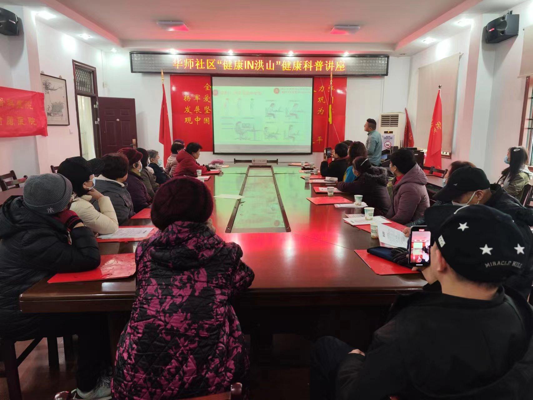 为了加强对本社区居民的健康科普宣传,增强居民的健康保健意识,华师社区联合湖北中西医结合骨科医院,于2023年12月29日上午9点在社区二楼大会议室开展主题为“腰椎的防护和锻炼”健康讲座,社区居民们踊跃参加。