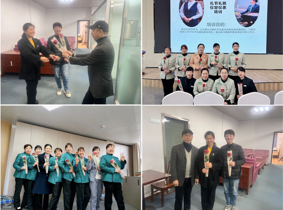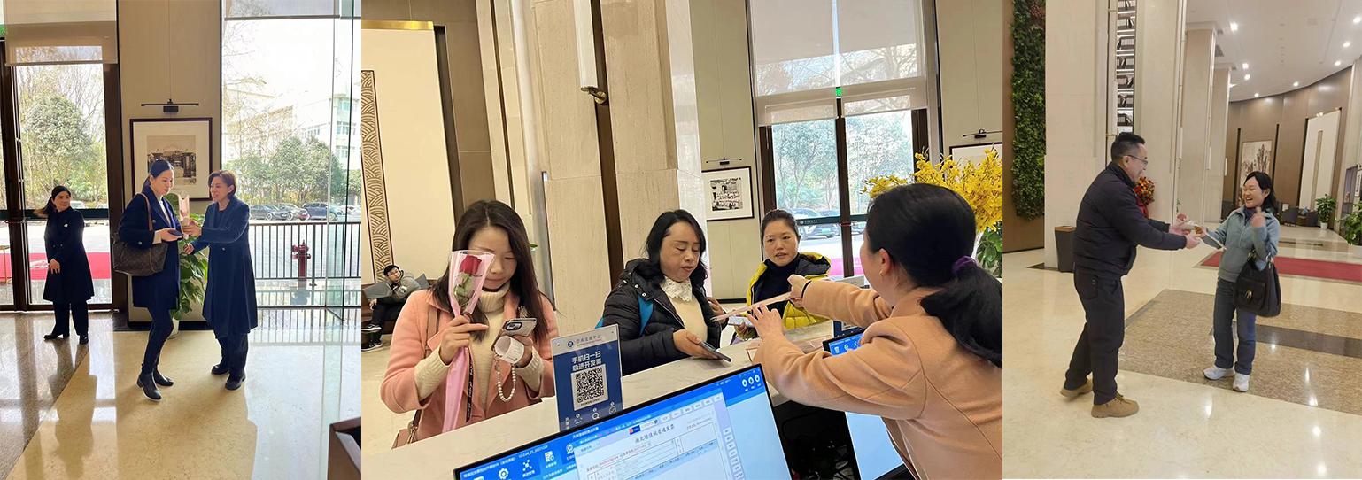早晨第一缕阳光洒进学术交流中心、管理教育综合楼大厅时,一朵朵精心挑选鲜艳的玫瑰花就已到住店女宾客的手中;电子屏中精美的图文祝福信息,充满了对女性们的关注和尊重;中心的礼仪妆容培训课程,为女职工们提供了实用的妆容技巧和建议,帮助她们打造得体的职业形象,提升了自信心,也让她们更加明白自己的价值和魅力。