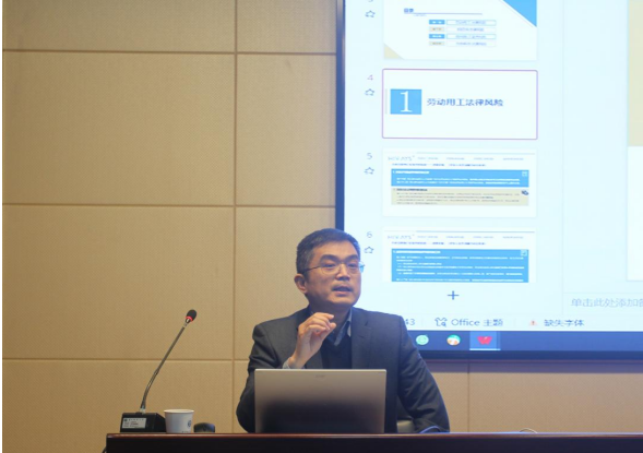 3月14日下午,在管理教育综合楼103室开展了第一次培训会。此次培训会邀请上海市海华永泰(武汉)律师事务所孙刚律师授课,主题是“后勤管理中的法律风险及应对策略”。部领导班子成员、中层管理人员及各部门业务骨干共98人参加,会议由副部长史冬梅主持。