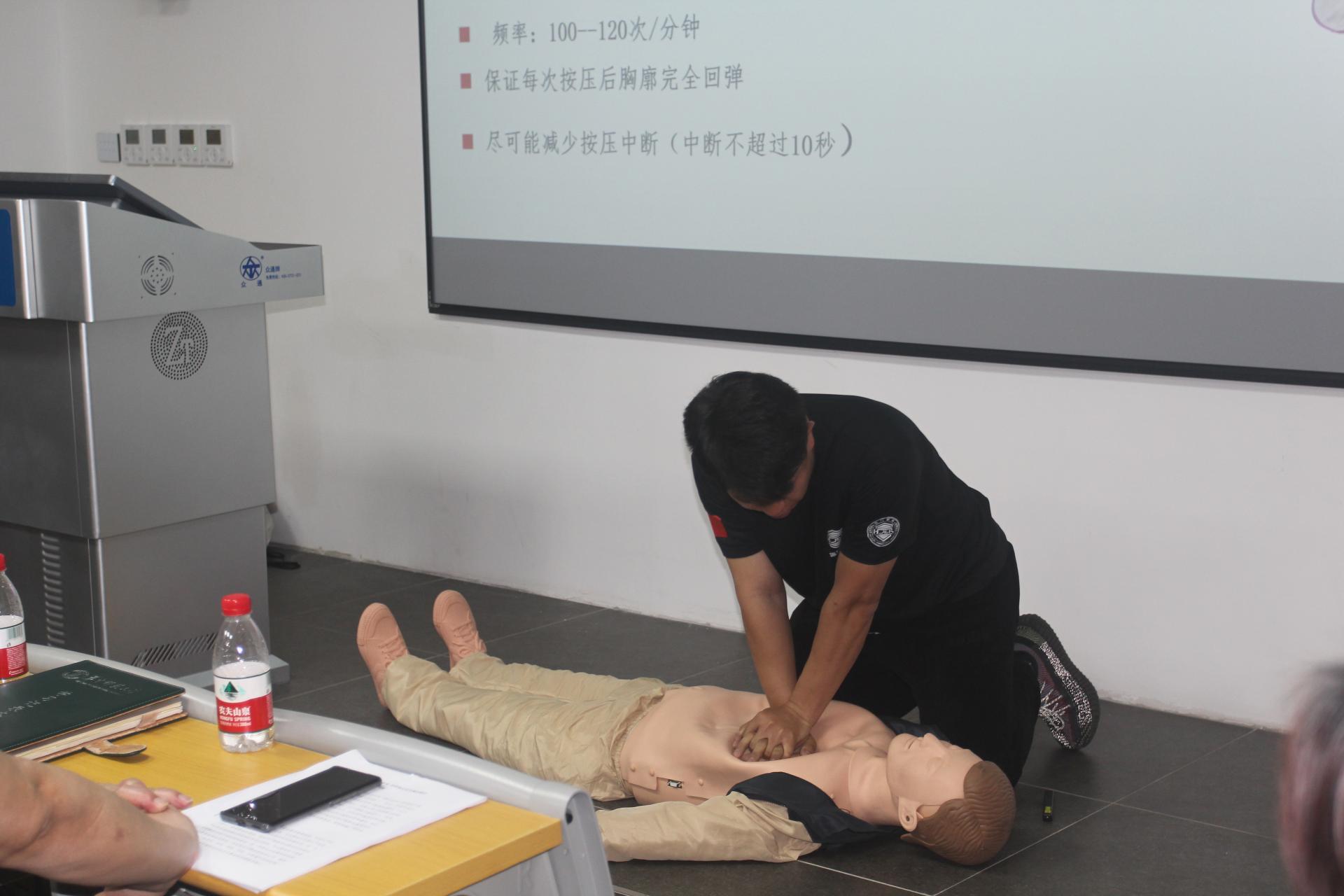 武汉轰九的专家以《消防安全知识专题培训》为题,开展应急救援培训。现场示范海姆立克急救法、AED心肺复苏等急救知识,结合中国急救现状,强调了院前急救的重要性,并详细介绍了心肺复苏、海姆立克急救法以及创伤救护等院前急救技能。参训人员认真听讲,积极参与实践操作,有效提升了自身的应急救护能力。