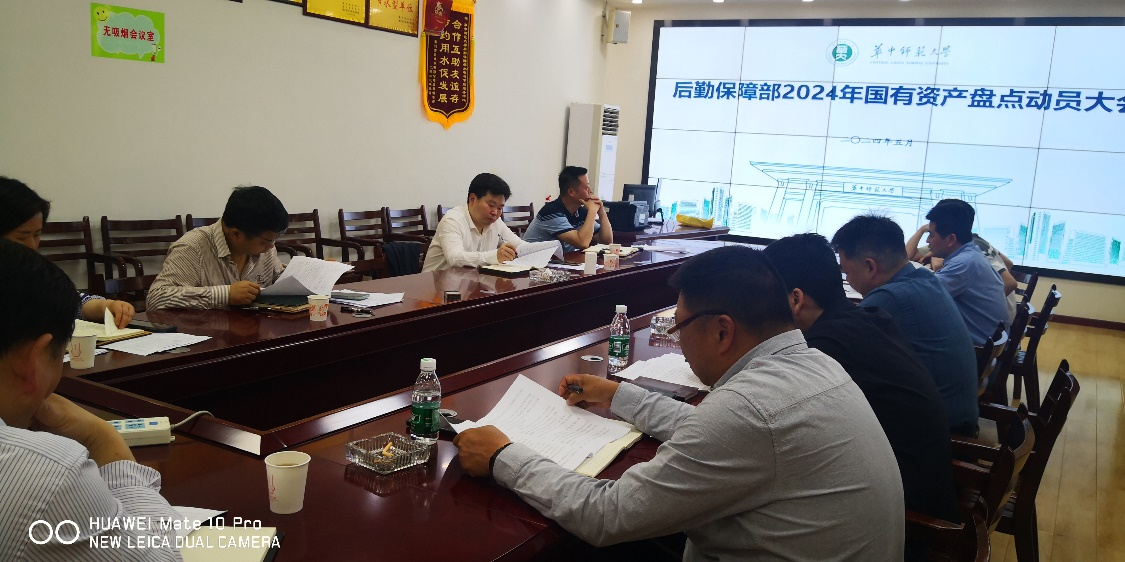 为了认真贯彻落实华中师范大学2024年度国有资产盘点会议精神,进一步清理资产旧账,明晰资产使用责任主体,切实提高资产使用效益,5月6日下午,后勤保障部在节能监控平台会议室召开2024年度国有资产盘点工作动员部署大会。后勤保障部相关部领导和各单位中层管理人员参加会议,会议由后勤保障部副部长史冬梅主持。