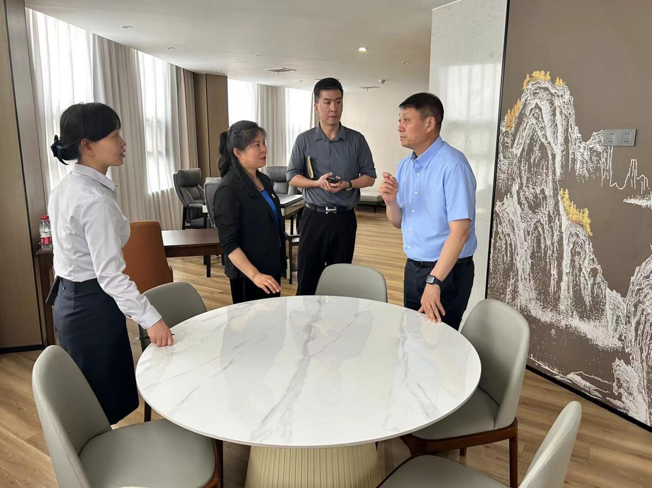 座谈会后,张慧权总经理一行在陈玉梅主任的陪同下参观了中心客房、厨房操作间等区域,并就菜品加工流程进行了交流,同时分享了许多提升客房、餐饮服务的案例,交流活动氛围热烈而融洽。