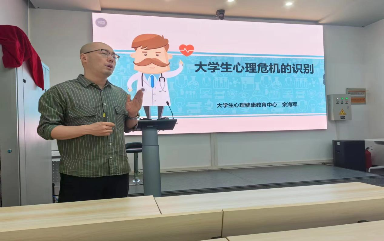 在全国第23个“安全生产月”活动之际,为进一步推动“人人讲安全,个个会应急-畅通生命通道”主题深入人心,学生宿舍服务中心积极响应,于6月4日上午,特邀我校心理健康教育中心专家余海军老师为学生宿舍服务中心全体员工及部分宿管员带来了一场别开生面的学生心理危机识别讲座。本次讲座也是中心今年开展的第二次心理安全教育特色活动。