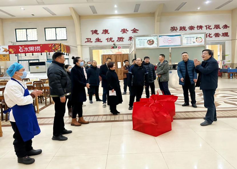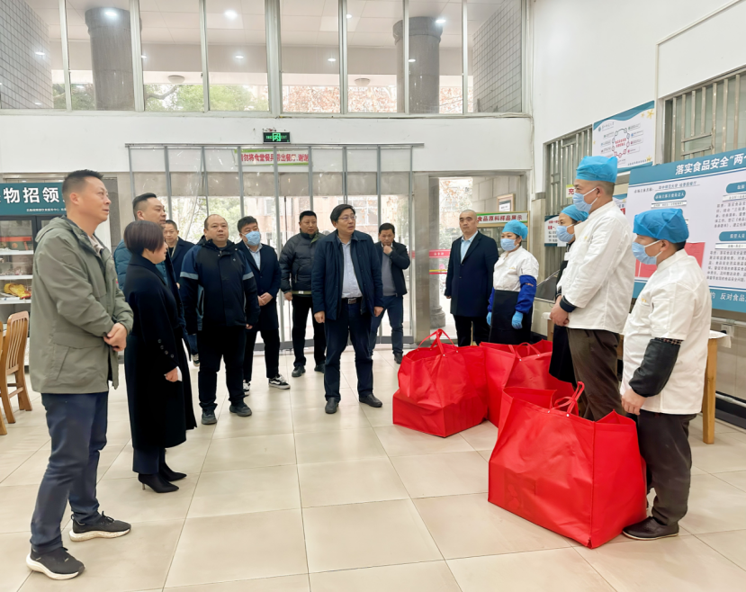他对后勤员工在春节期间舍小家、为大家,坚守岗位的奉献精神给予了高度赞扬,对大家的辛勤付出表示诚挚感谢,并送上了温馨的春节祝福和慰问品。