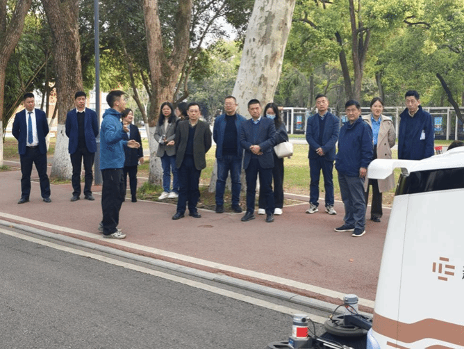 会后,调研组实地参观了我校校园自动清扫机器人运行场景。