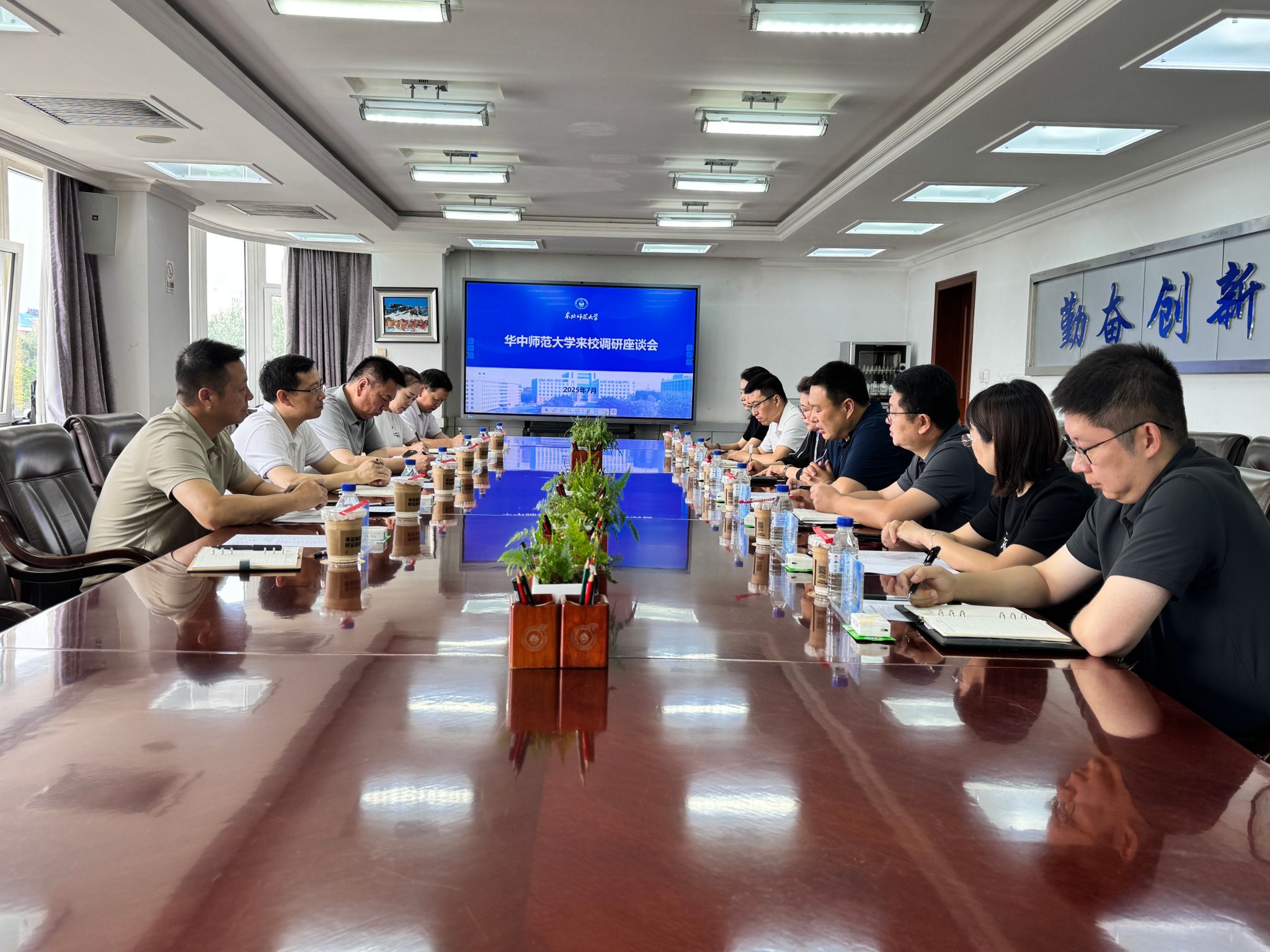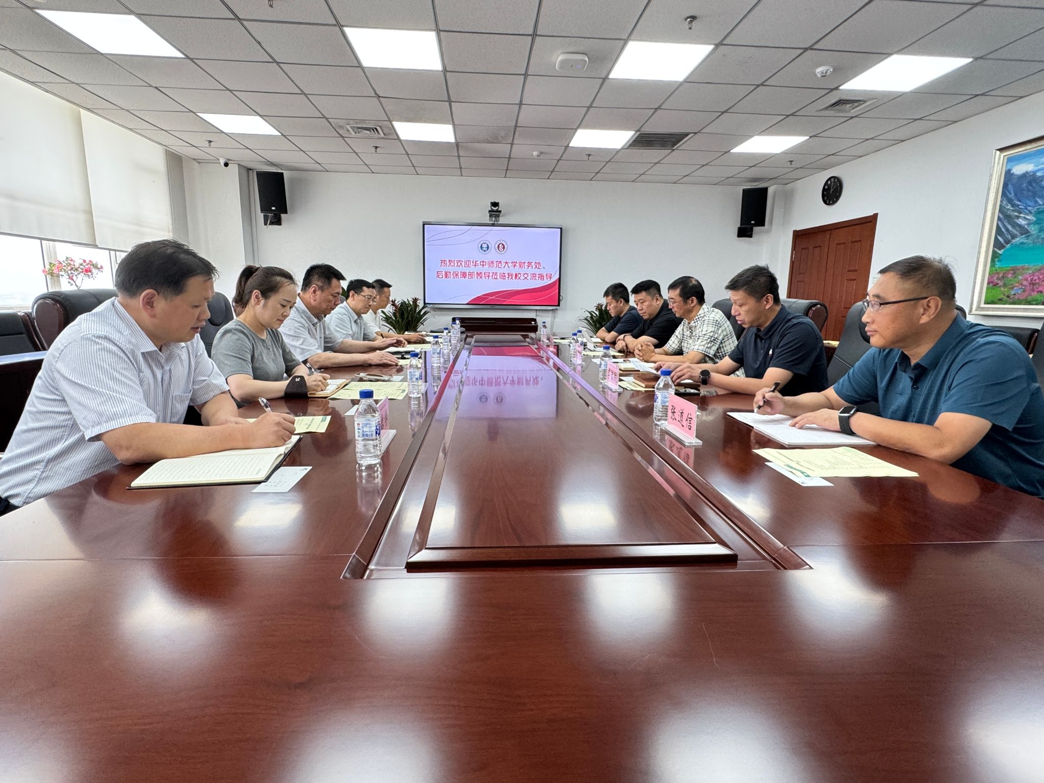 在长春师范大学,计划财务处贺关军处长分享了内控建设、银校合作实践,后勤服务处黄文博处长介绍了后勤社会化改革成果和推进后勤高质量发展的经验做法。双方围绕服务监管、校园绿化和新校区建设等具体工作进行了深入交流。