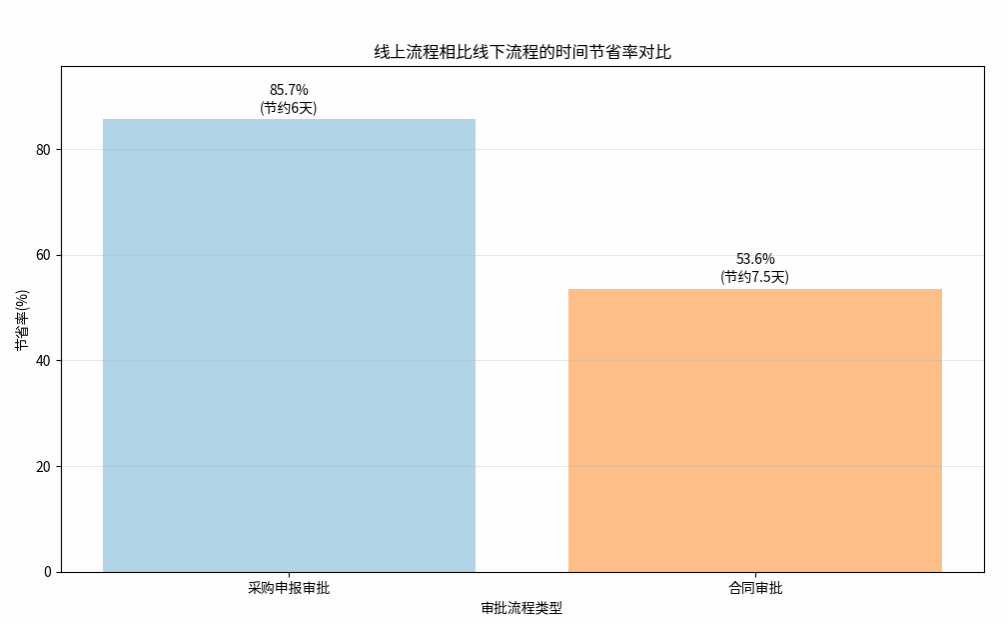 依托学校OA平台,全面推行采购与合同线上审批。采购审批周期由7天缩短至1天,合同审批由平均2周缩短至6.5天,实现了流程高效、稳定、便捷,大幅提升了响应速度。