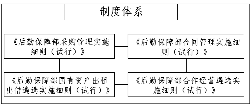 制定并实施《后勤保障部采购管理实施细则(试行)》等4项核心制度,构建起覆盖采购管理、合同管理、出租出借、合作经营等重点业务的制度框架,实现了“重点业务有制度、特殊业务有规范”。