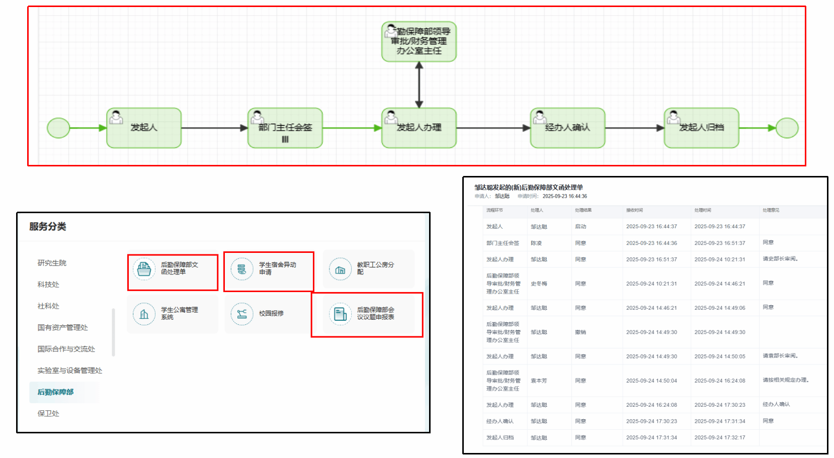 协同攻关初步打通阻梗。积极联合信息化办公室、学工部等部门,探索跨部门业务协同审批机制。以宿舍异动流程为试点,推动多部门数据无缝流转,为构建一体化服务平台、消除“信息孤岛”积累重要经验。