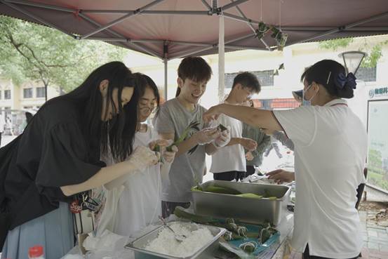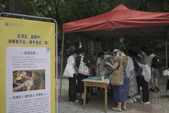 在东区学子餐厅、西区桂香园餐厅、南湖食堂一楼等食堂,广大师生参与活动,领取丰富的端午节礼品。