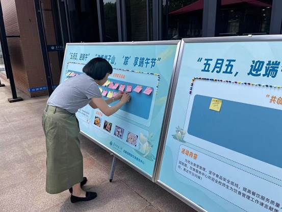 后勤保障部饮食服务中心在此佳节来临之际,面向全校师生在桂子山上举办了“五月五,迎端午、浓情桂子山,‘粽’享端午节”的系列活动。活动内容包含:节令美食品尝,进餐赠好礼,品味传统、不忘师恩、爱国爱校送祝福及餐饮管理意见征集等等。