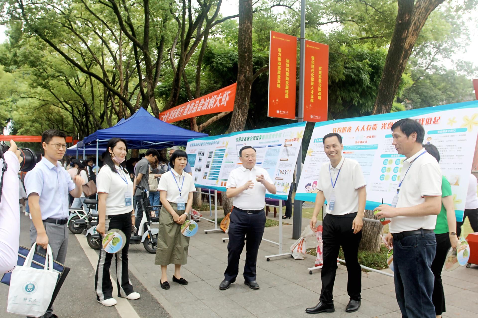 华大在线讯(记者 郝日虹)6月12日,后勤保障部分党委主办的“深学笃行筑文明理念,群策群力建绿色校园”主题教育活动在恽代英广场举行。校党委书记夏立新、校长郝芳华、副校长任友洲出席。本次活动旨在深入推进主题教育,深学笃行习近平生态文明思想,进一步加强文明、安全、节能、环保的绿色校园建设。