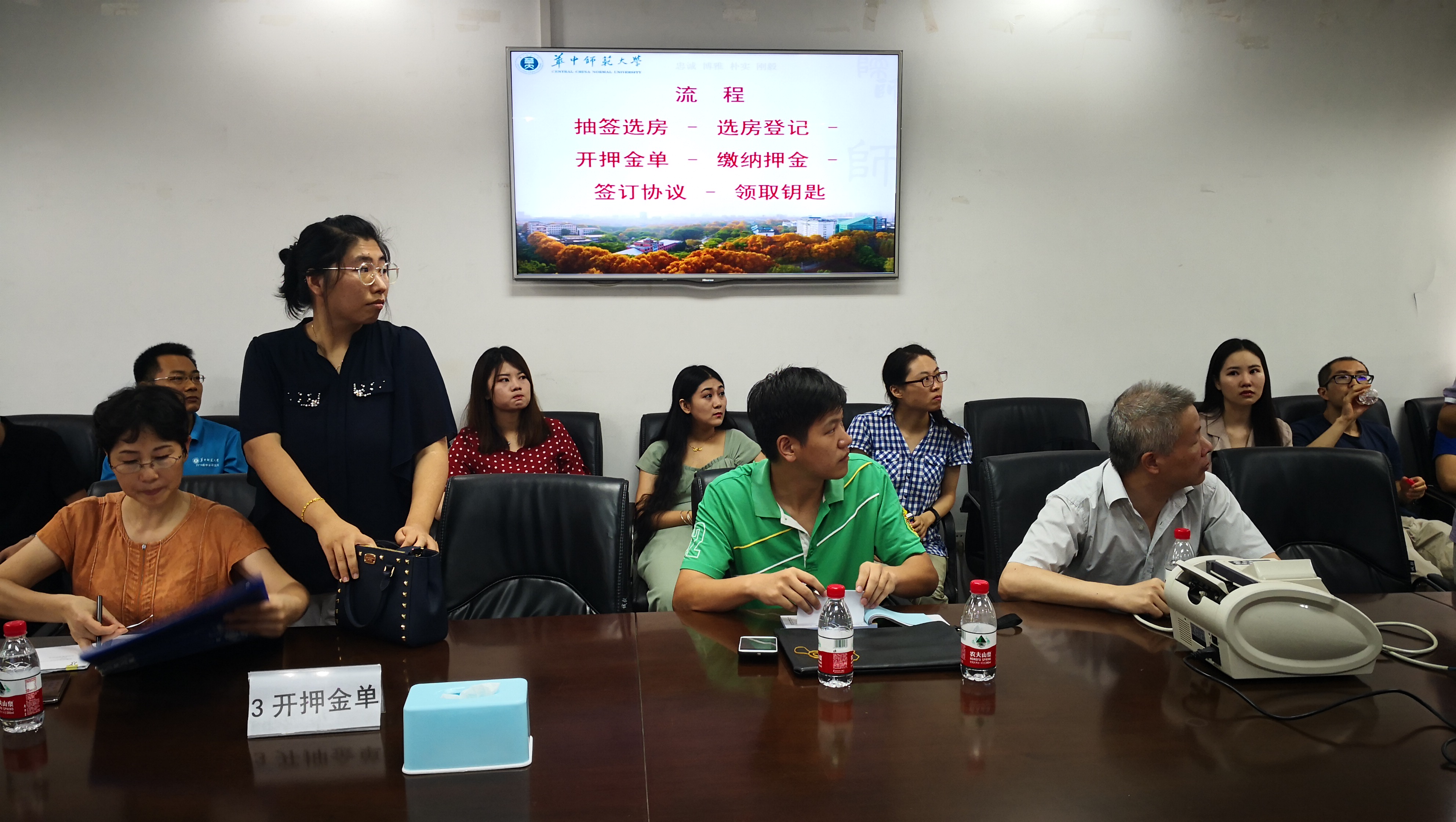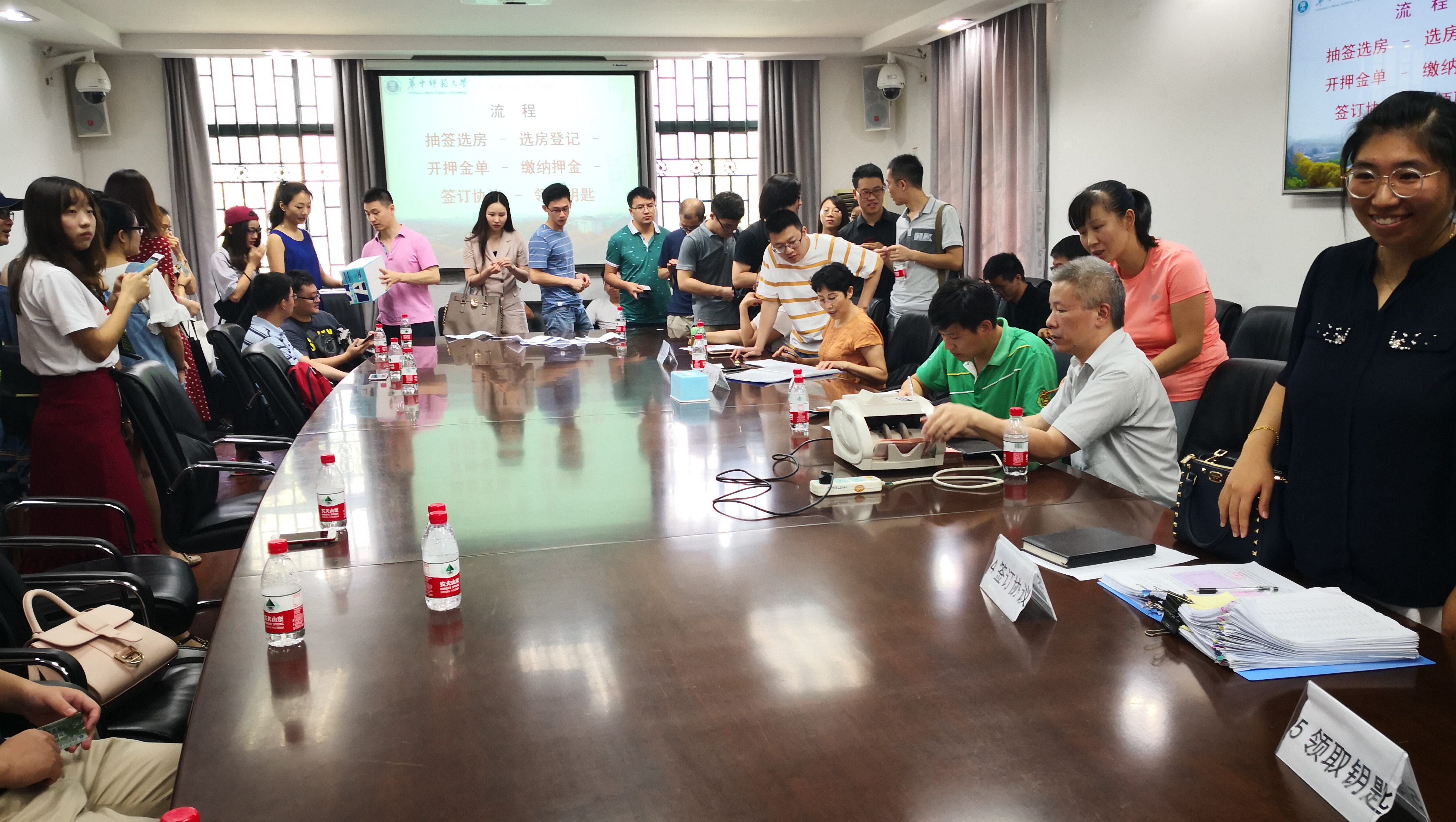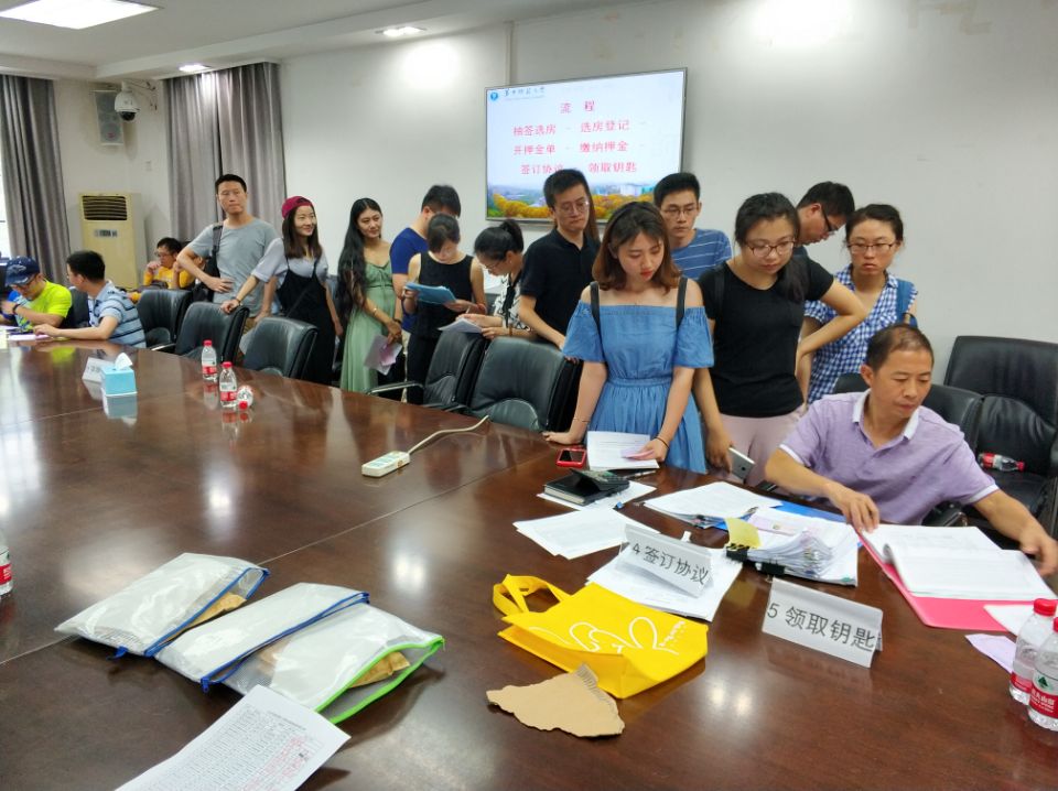 8月9日上午10点,2018年新进校青年教职工周转房集中安置工作在行政楼附楼201会议室顺利进行,在暑期集中报到的四十多名青年新职工参加了此次集中安置工作。