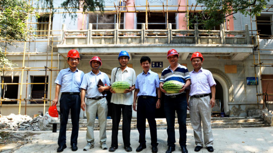 今年武汉高温酷暑已达25天,学校暑期工程建设一片繁忙,在高温酷暑中忙碌的一线工作人员的身影引起了赵凌云校长的高度重视。8月5日,赵凌云在学校办、基建处、后勤保障部负责人陪同下赴学校各在建工地等慰问坚守高温一线的工作人员,并送上了防暑降温的慰问品。