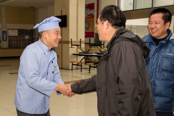 每到一个慰问点,蔡校长都会一一与大家握手,送上新春祝福,并认真询问值班和安全情况。另外,他还非常关切这些仍然“奋战”在一线的员工们怎样过好除夕夜。他叮嘱说,春节期间,要让留校的学生有饭吃,要保证水电、宿舍、教学楼的安全,要让校园保持干净整洁……凡此种种,都离不开后勤工作人员的默默坚守和辛勤付出。然而,坚守岗位固然是工作需要和职责所在,但是在“顾大家”的同时,也要“顾小家”。不论是电话还是视频,别样团聚方式贵在有家人的陪伴。